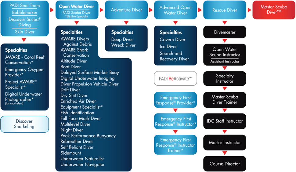 PADI (Professional Association Diving Instructor) offer many products for beginner or to continue the education of experienced divers with the attempt to introduce people into new adventures below the sea level.
